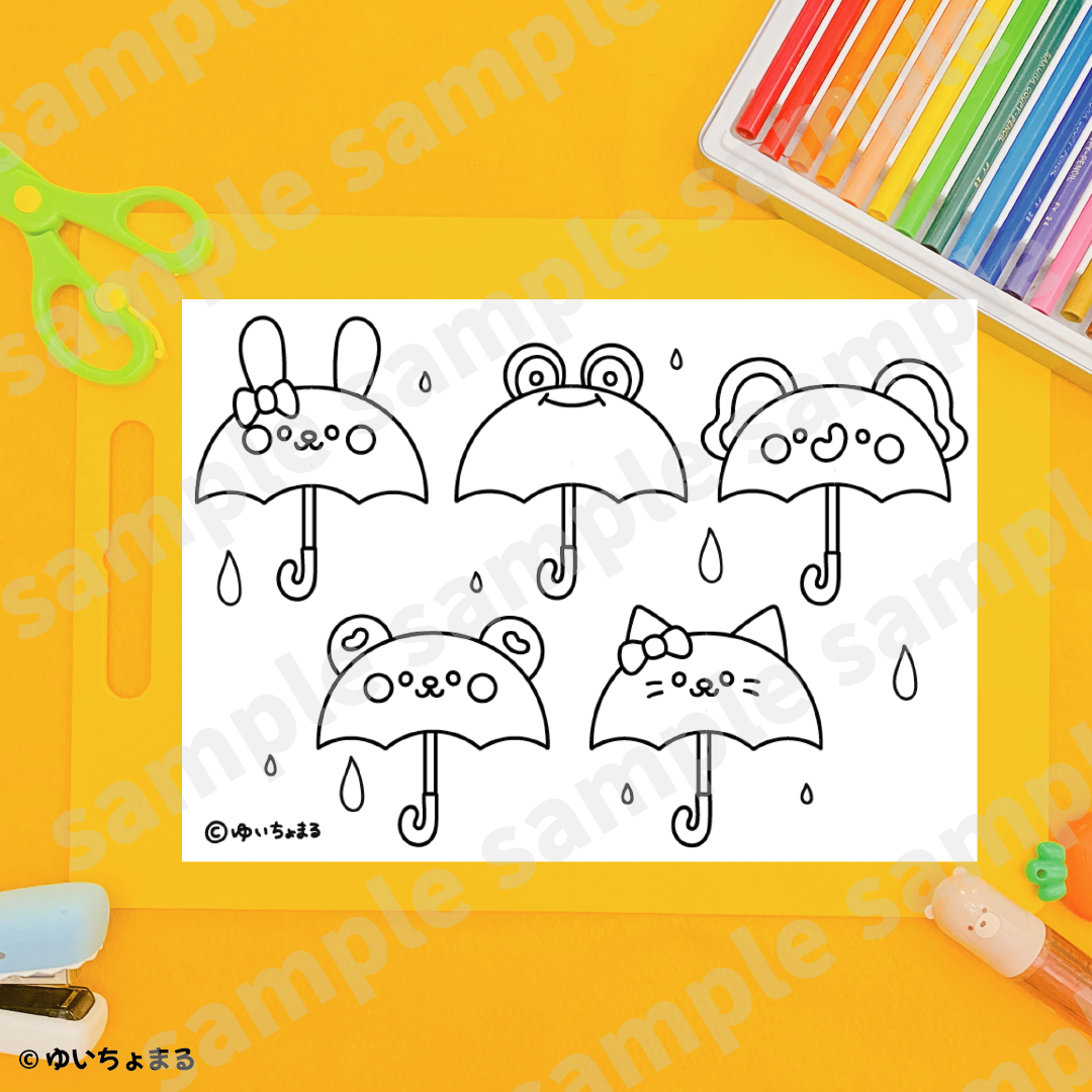 ぬりえ素材 どうぶつの傘
